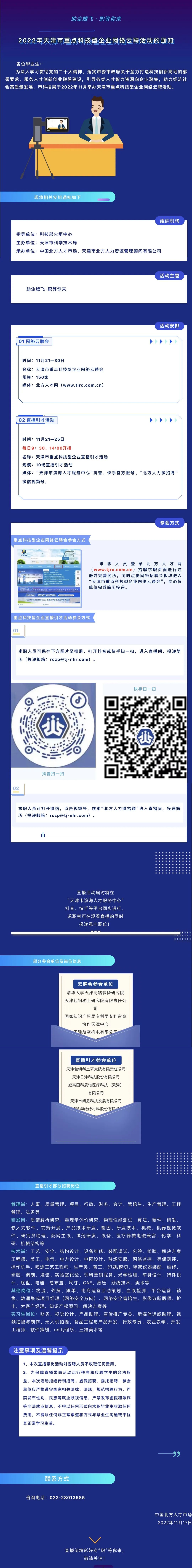 【招聘会】2022年天津市重点科技型企业网络云聘活动的通知