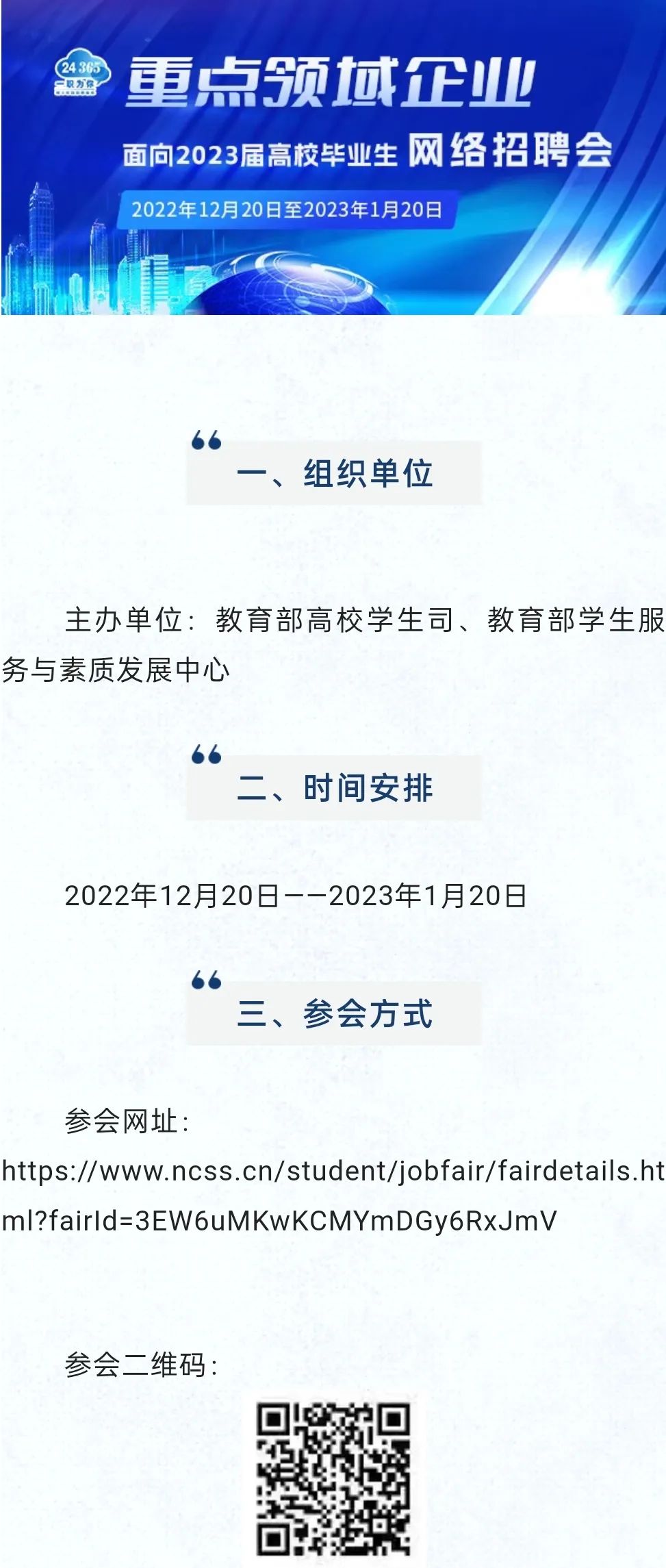 【招聘会】重点领域企业面向2023届高校毕业生网络招聘会