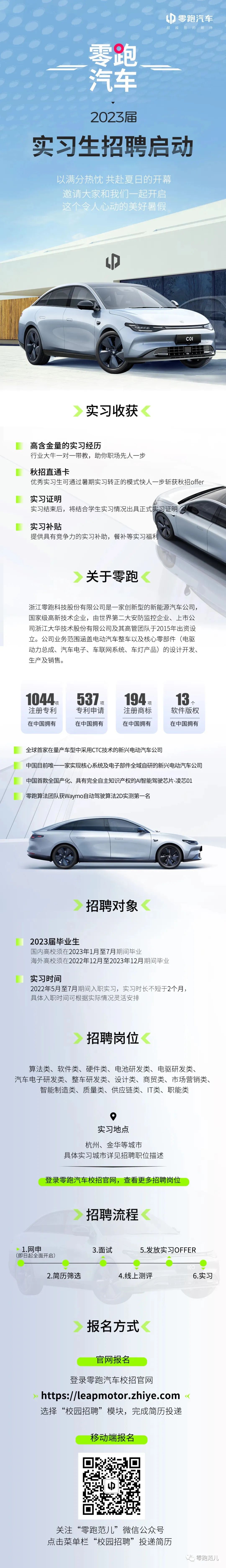 【实习推荐】零跑汽车2023届实习生招聘启动