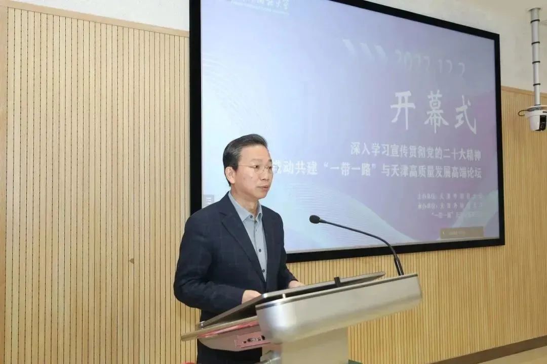 天津市社会科学界联合会党组成员、专职副主席袁世军,天津外国语大公司党委书记殷奇分别在开幕式上致辞。